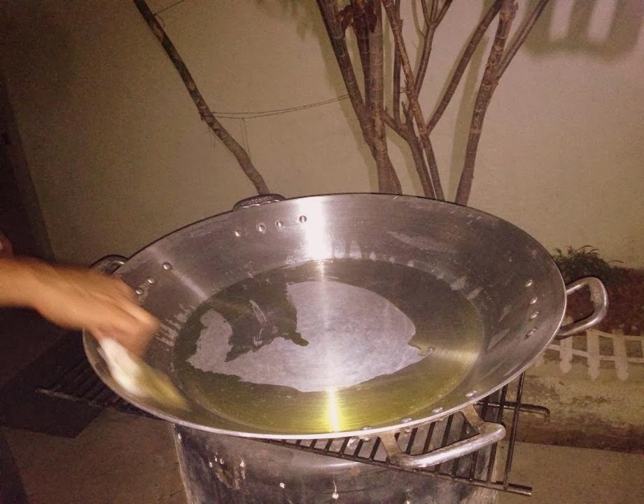 Con una tina de lavadora como asador, una parrilla mágica guarda secretos, una paellera caliente brillante con aceite, un trío de cucharas, y bajo el ojo atento de nuestra bien peinada Chef – muy bien respaldada por dos “Guardianes del Fuego” – los integrantes del equipo, empezamos el ritual mágico de la preparación. Uno a uno y cuidadosamente se fueron agregando los ingredientes: la chistorra, el camarón, calamar, pulpo, carnita y pollito; luego el arroz, el caldito y la verdura. Todos sonrientes, concentrados y muy pacientes.