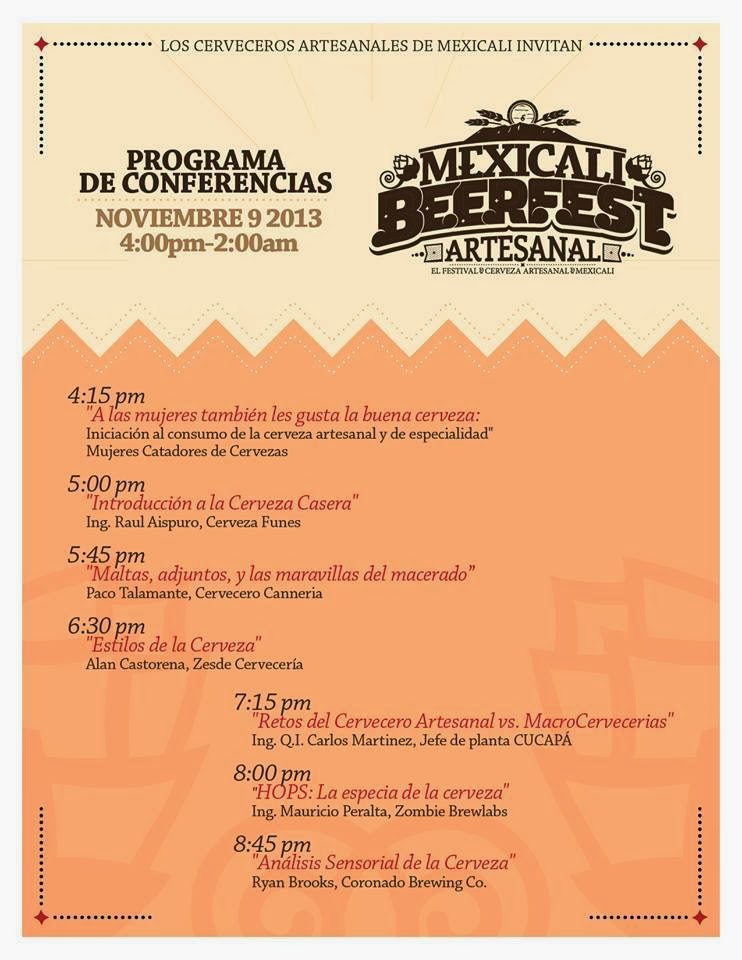 La cita era a las cuatro de la tarde, pero la gente empezó a llegar como a las cinco y media, seis de la tarde, y había una gran fila para entrar. A quienes iban entrando le daban boletitos para las cinco degustaciones que incluía la entrada y los revisaban de arriba a abajo. Se entraba a la zona del festejo, pasando entre las dos hileras de baños portátiles, luego se atravesaba la zona de conferencias, que se improvisó antes de iniciar con la primera charla, ya que anteriormente se había programado afuera del área de festejos, pero la gente no quería salir, así que se optó por cambiarla e improvisar. En total fueron seis conferencias las que se llevaron a cabo, todas sobre tema de cerveza, claro está: lúpulos, maltas, retos de lo cerveceros, etc. Los conferencistas, además de Mujeres Catadoras de Cerveza en México, fueron Francisco Talamante de Cervecería Cannería; Raúl Aispuro de Cervecería Funes y Mauricio Peralta de Cervecería Zombie, entre otros.