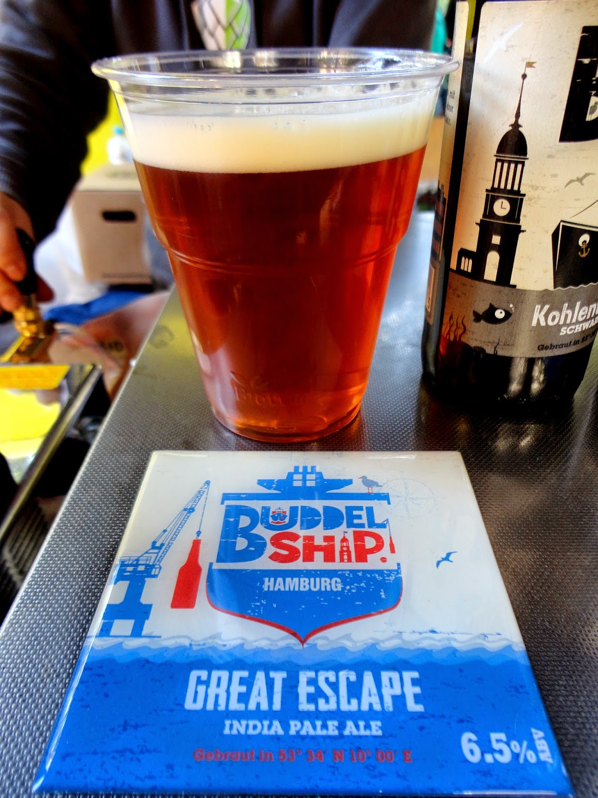 Además, en el evento en Berlín, a disposición del público interesado también tenían dos cervezas artesanas en barril: Great Escape , una India Pale Ale, la cual fué la que elegí para probar, ya que es de mis estilos favoritos de cerveza.