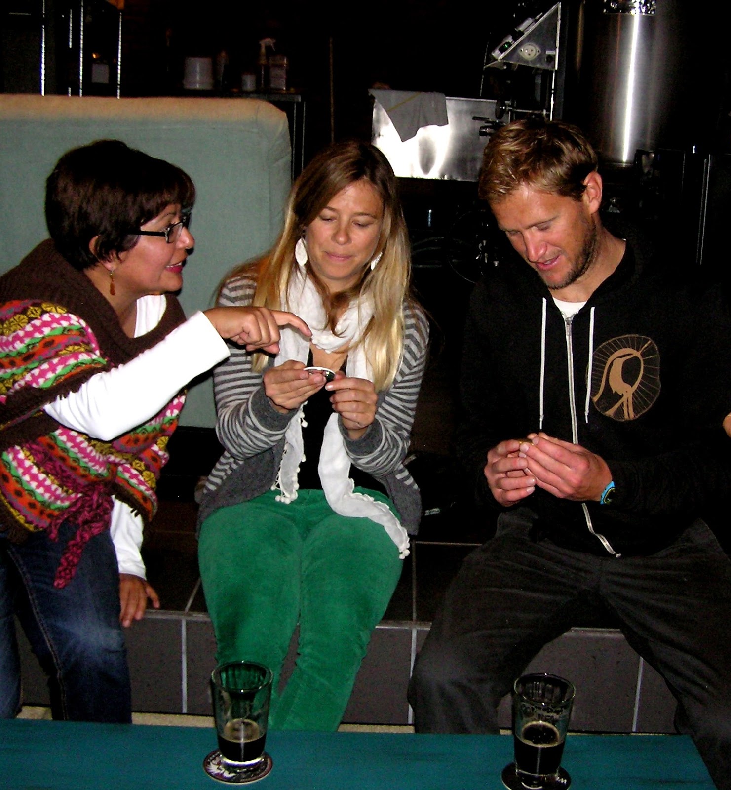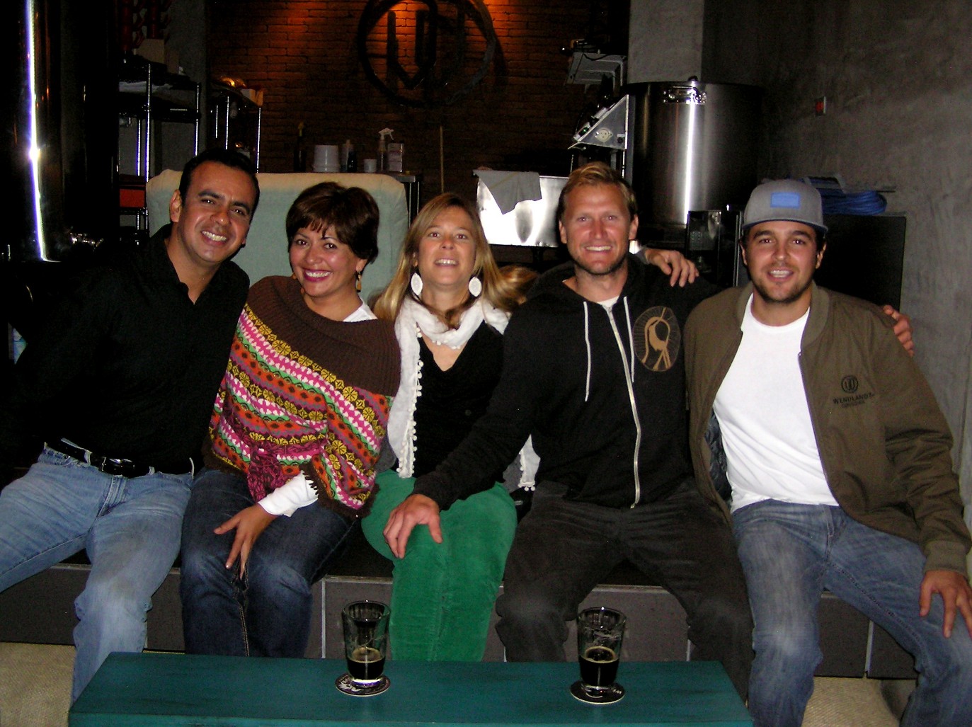 Conociendo a cervecero de “Stone Brewery” en Cervecería Wendlandt – Ensenada – Bierlinerin Skip to content Ayer durante el “Tour Cervecero”, o mejor dicho lo que se realizó de él*, de Mujeres Catadoras de Cerveza en México en la ciudad de Ensenada, que se fusionó con la celebración de cumpleaños de una de las socias, conocí casualmente a uno de los cerveceros que elabora mi cerveza preferida de todos los tiempos y continentes, IPA y Ruination IPA de “Stone Brewery” . Primero pensé que me estaban cotorreando algunos de los ahí presentes cuando me comentaron que uno de los cerveceros de “Stone” estaba en el mismo bar que nosotros, ya que casualmente estábamos en el tema de las Indian Pale Ale , pero para mi sorpresa, el chico Ben Matz se acercó a nuestra mesa y nos dió su tarjeta para invitarnos a las chicas del movimiento “Mujeres Catadoras de Cerveza en México” a visitar la cervecería sandieguina, nos dijo que lo contactáramos y que el personalmente nos daría un tour especial. Me sorprendí con el amable gesto, al igual que algunos de los presentes. Luego, nosotros le platicamos sobre nuestro grupo y movimiento y le entregamos a él y a su acompañante, un prendedor con el loguito . Además, conversamos brevemente sobre las bondades de la IPA, y de que en Estados Unidos existe un movimiento femenil, una asociación un tanto parecida a la de “Mujeres Catadoras de Cerveza en México” , llamada “Pink Boots Society” .