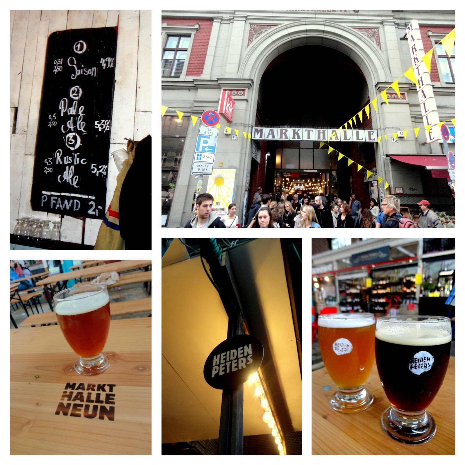 Markthalle Neun, un edificio antiguo rescatado con diferentes puestos de comida y productos artesanos. La cervecería de casa y cervecería estrella es Heidenpeters, excelentes cervezas: pale ale, india pale ale, blond ale, saison, así como también en mayo, la de temporada: Maibock. Punto a destacar: la cerveza estilo pale ale, de las mejores que he probado elaboradas en Alemania y todos los puestos de comida del mercado.