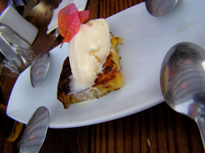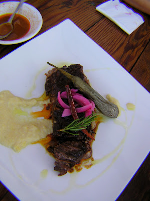 Como estabámos de celebración, después de haber disfrutado una cervecita y refrescar los cuerpecitos causados por el intenso calor veraniego en el Valle, mis amigos y yo, nos desplayamos con el desfile de platillos: ensalada del huerto, pulpo a las brasas, tostaditas de pulpo, sepas, borrego a la caja china, costillas de cerdo, panecitos, tortillas y los respectivos postres: pastel de elote y un pastel/budín de chocolate, que no recuerdo el nombre, pero sí, el sabor. Debo decir que los platillos son creaciones culinarias creativas, con ingredientes frescos, considero que todos tienen un toque especial, lo que hace que los sabores exploten en el paladar. En cada platillo, me sentía como Ratatouille , el personaje de la película animada que cuando cerraba sus ojitos al probar algo delicioso, se sentía en el cielo y en las estrellas….
