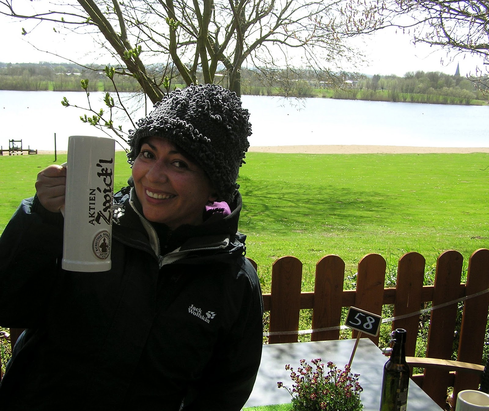 Fué uno de los mejores paseos en bici durante mi estancia en Alemania: día soleado, casi primaveral, no mucho tráfico de ciclistas en la vereda, el conductor del barquito, un señor ancianito muy amable y simpático me preguntó si era de Filipinas; además, miré a algunos pajáritos revoloteando en la pradera. ¡ Ah! y de regreso me caí de la bici, je je, les digo, las Zwick’l estaban poderosas: al intentar “saltar”, “rampear” un bordito de la banqueta, creyéndome conductora profesional BMX, ¡ zas! dí el porrazo en plena calle, por suerte no venían autos y no me lastimé. ¡ Qué oso! Aún así, buenos recuerdos, buena experiencia… y ¡ ya se me antojó una Zwick’l!, así fresquita, así de sabrosita en el tarrito…¡ Saludos!