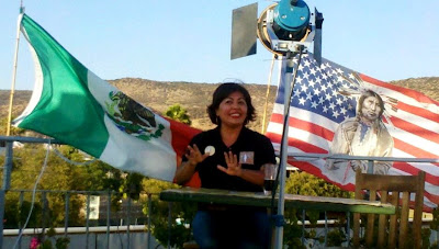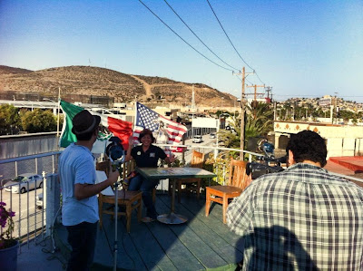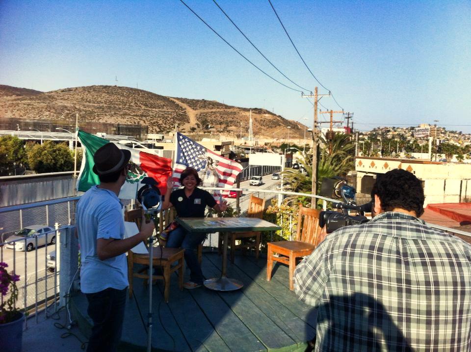 La entrevista fué por la tarde – debido a cuestiones de luz – en una locación que muestra perfectamente la idea del documental que se llamará “Hecho en Baja California”: a un ladito de la frontera de México con Estados Unidos: Tijuana y San Ysidro. Desde la terraza del edificio donde estábamos, “Casa del Túnel, centro de arte y cultura”, se podía apreciar perfectamente el lado mexicano y el lado “gringo”. Por unos instantes, me llegué a sentir super poderosa, con las dos banderas atrás de mí: me creía candidata política, luego periodista y conductora de noticias de Univisión… y así sucesivamente.