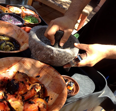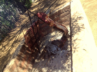 El lugar es al aire libre, bajo la sombra de varios árboles, con decoración mexicana y muebles rústicos; se respiran los asados por doquier y de repente caen las aceitunas de los olivos sobre la cabeza je je…muy agradable el restaurant. Me hubiera gustado más si tuvieran en el menú, cerveza artesanal, snif…sólo venden cerveza comercial, y para mi suerte quisquillosa, me tocaron un par de botellitas muy tibias, además, el postre no fué el “hit”. Nosotros llegamos temprano, pero cuando dejamos el lugar, me llamó la atención que ya estaban todos los lugares llenos y la mayoría eran familias que estaban festejando cumpleaños y comiendo los aromáticos asados… ¡ mucho éxito a este restaurant al aire libre en medio de tanta calle bacheada! je je…se ve que le están poniendo ganas, y lugares así no abundan en Ensenada 😉 (please , vendan cerveza artesanal, je je)