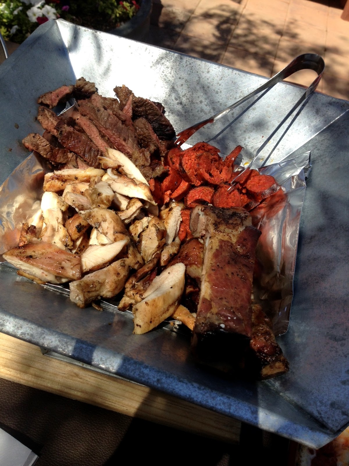 El lugar es al aire libre, bajo la sombra de varios árboles, con decoración mexicana y muebles rústicos; se respiran los asados por doquier y de repente caen las aceitunas de los olivos sobre la cabeza je je…muy agradable el restaurant. Me hubiera gustado más si tuvieran en el menú, cerveza artesanal, snif…sólo venden cerveza comercial, y para mi suerte quisquillosa, me tocaron un par de botellitas muy tibias, además, el postre no fué el “hit”.