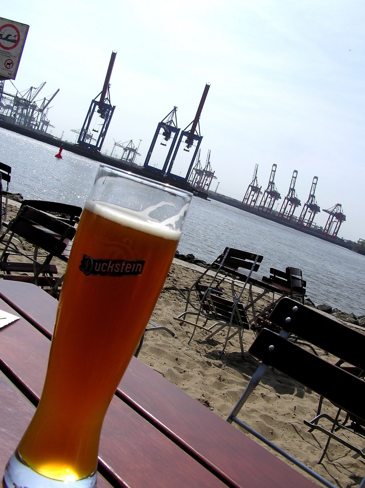 Una de trigo de la cervecería Duckstein en la playa más conocida por los hamburgueses: Strand Perle, a la orilla del río Elba en Ovelgoenne