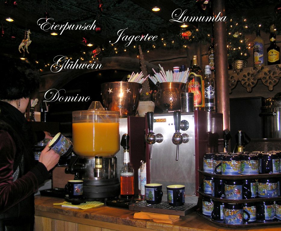 Las bebidas típicas de los mercados de Navidad en Alemania casi todas son mezclas de licores con frutas, hierbas o especias y se sirven calientes, claro, para contrarestar el frío de la temporada. Hay de todos los tipos y se toman normales o “mit Schuß“, “con piquete”, que es un poco de ron, brandy, amaretto o cualquier otro licor.