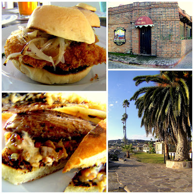 Restaurant Bar El Pelícano Gastro Pub en Quintas Papagayo: pambancitos de ostión empanizado y sandwich focaccia con pescado y camarones.
