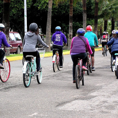 El paseo fué familiar y consistió en recorrer las principales calles del puerto, las cuales están actualmente en su mayoría repleta de baches, mejor dicho, pozos gigantes y enormes simulando hoyos negros, por lo que, se requirió de mucha más concentración al pedalear; además de que durante las pedaleadas grupales, es común que algunos jóvenes se atraviesen a gran velocidad entre los ciclistas y sin decir “con permiso”, por lo que hay que estar muy alertas, voltear a cada rato a la derecha, izquierda, sostener firmemente el manubrio, y muy importante: usar casco de marciano , aunque personalmente no me guste.